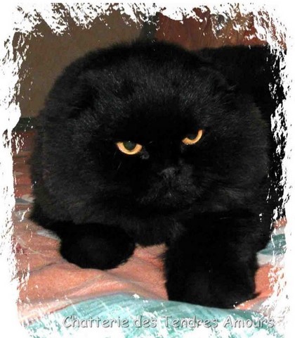 J' ai attendu Juillet 2006 et , Big Love de Lumtourie est venu à moi , un adorable Highland Fold Black Smoke . Mais il n' était pas seul, sa petite soeur le suivait de partout . Cette magnifique British Longhair Ecaille and White nommée Betty Boop de Lumtourie a su faire pétiller les yeux de mon mari et les miens !